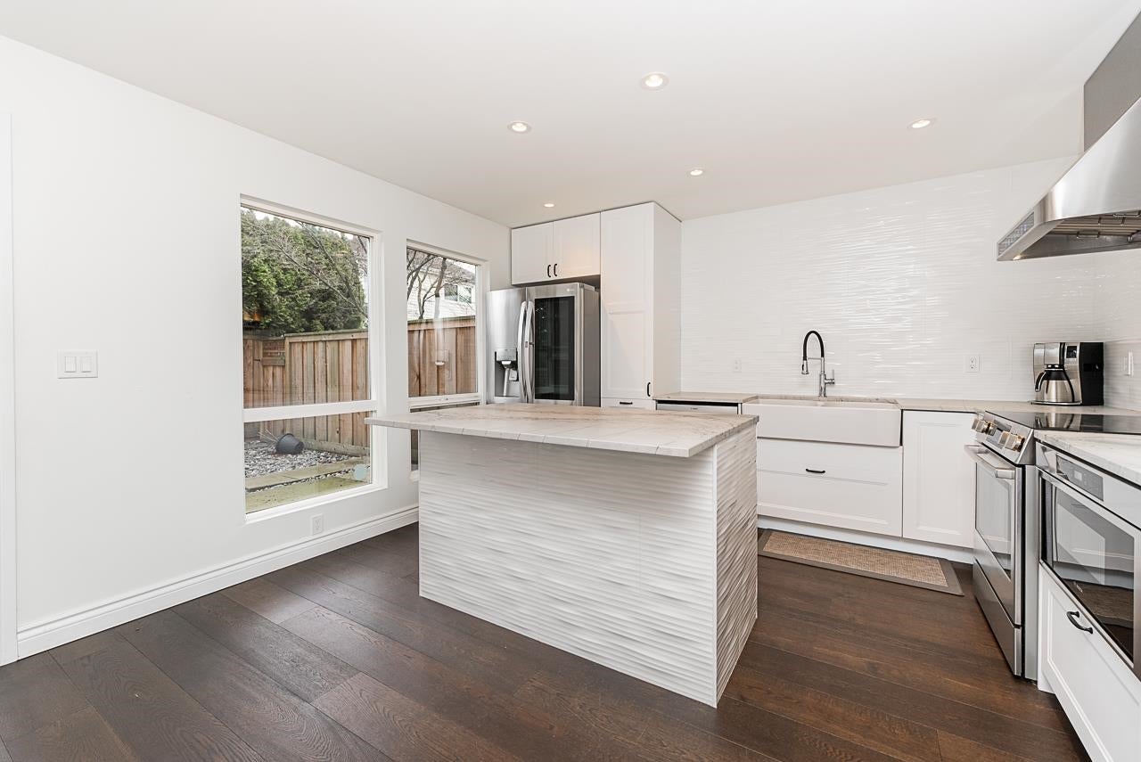 Exceptional Townhome Living in Ladner! This 1500 Sqft, End-unit Townhome offers 3 bedrooms, 3 bathrooms and main floor living in of Ladner's best complexes, Rosewood Court. Thoughtfully upgraded, it features a modern kitchen with Bosch appliances, an LG fridge, a Fireclay sink and quartzite countertops. Stunning oak flooring throughout, cozy radiant heating for year-round comfort and a spacious, fenced backyard unique to this end-unit. Perfectly located, just steps to historic Ladner Village. Quick possession possible. Don't miss out, call today to book your private showing!