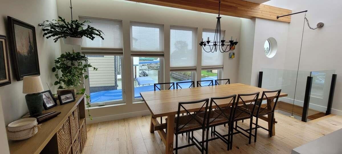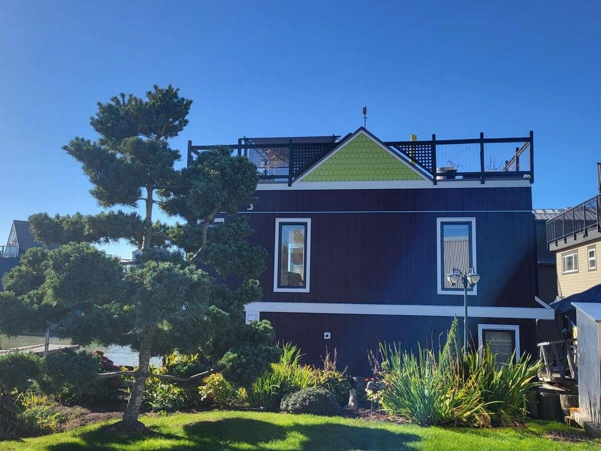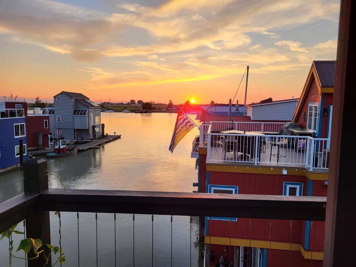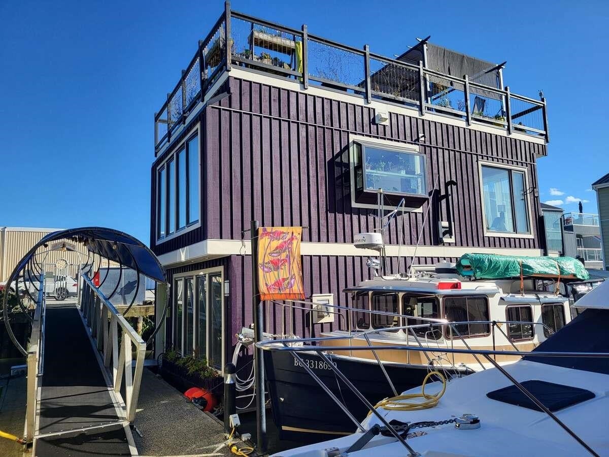 For more information, click the Brochure button below. This exceptional float home is situated at Marina Wes-Del, one of the most sought-after float home strata communities in the greater Vancouver area. The 1200 sqft home was designed and built by its owner, a float home builder/designer in the lower mainland and is set in an environment offering an extraordinary lifestyle. Enjoy sunset cruises, crab and salmon fishing, meander with your kayak thru Canoe Pass, walk or bike the dyke to Westham Island with its berry farms and bird sanctuary, head across the street to Keith's to pick up fresh eggs, vegetables or organic chicken for your next rooftop deck BBQ.