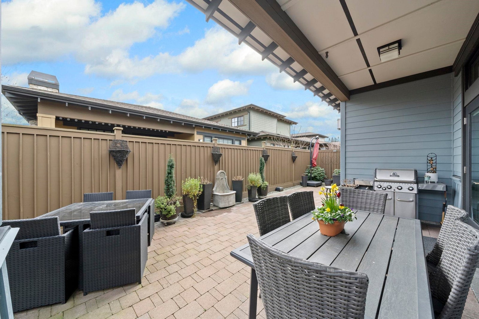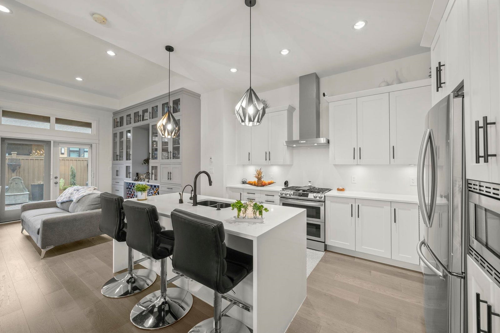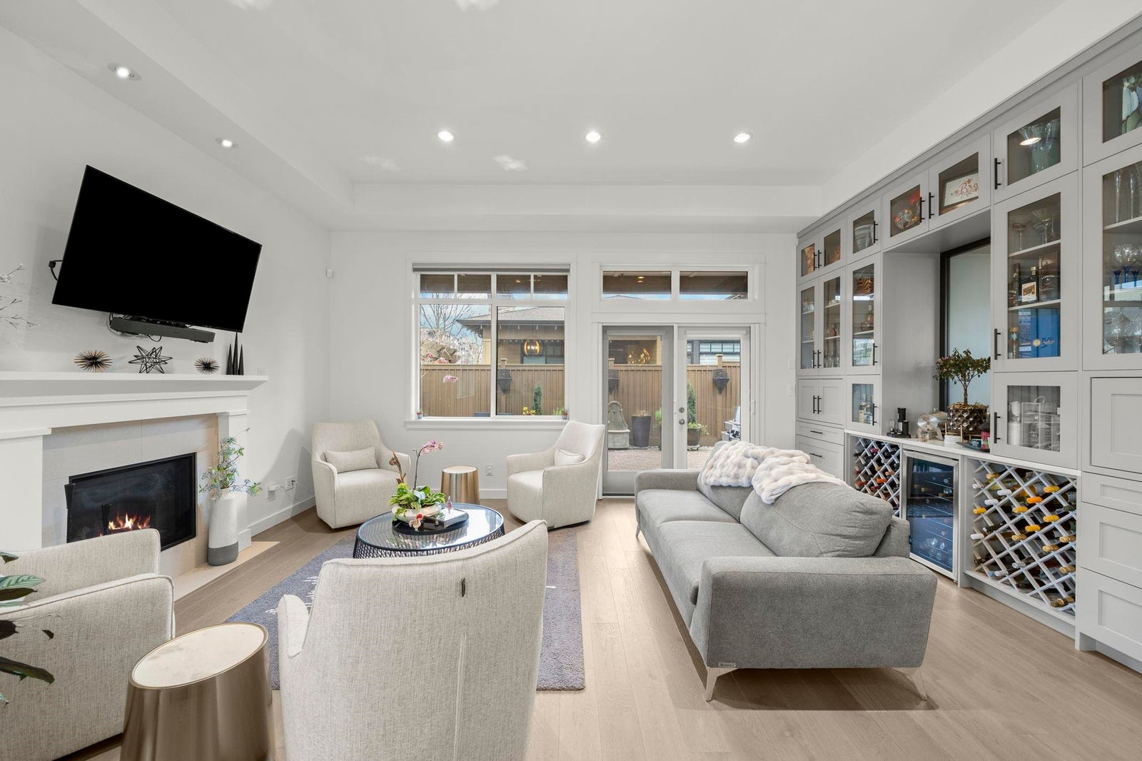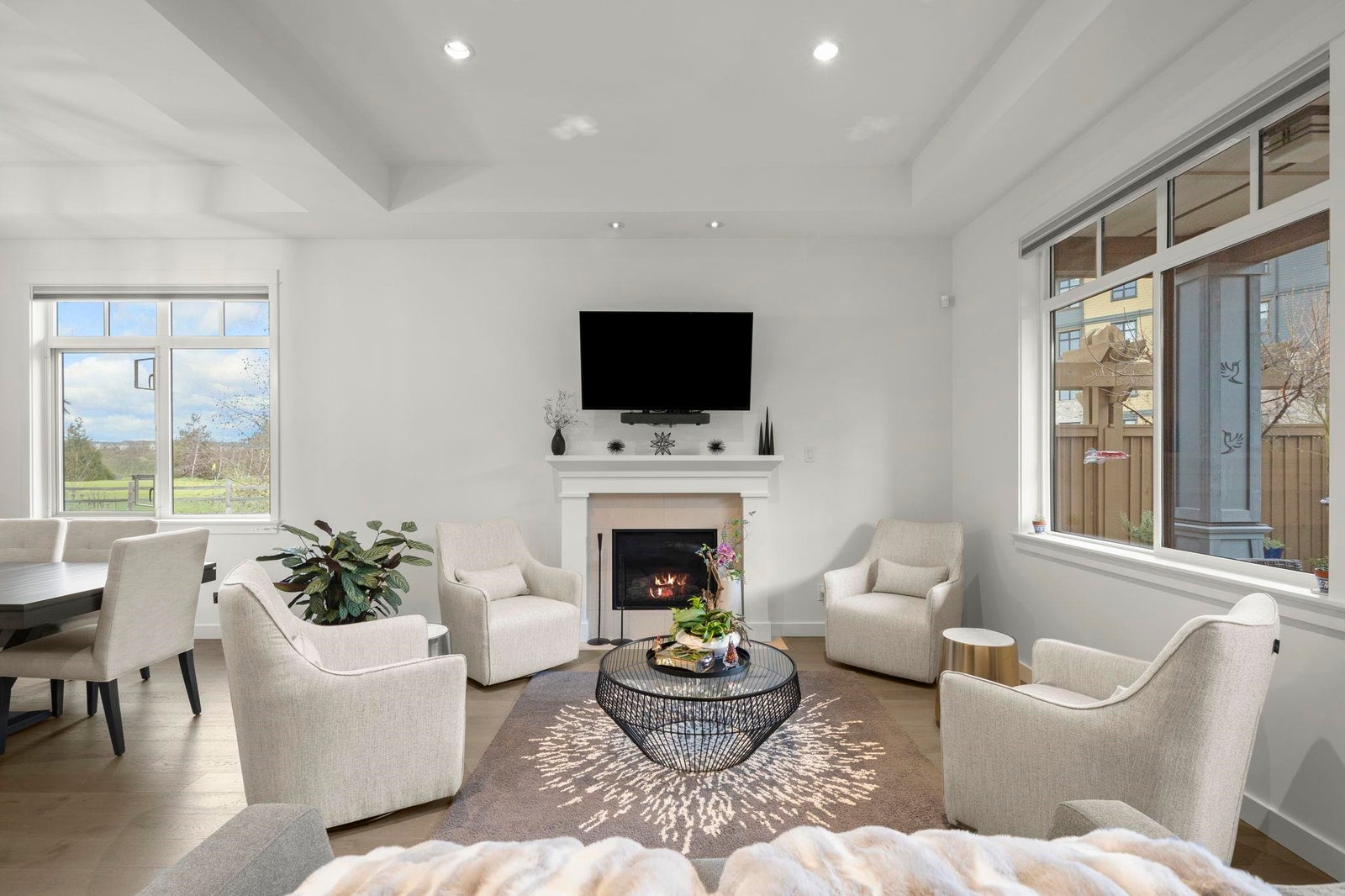 TSAWWASSEN SPRINGS DELIGHT~ rarely available 3 bed and office situated on a QUIET corner lot overlooking the GOLF COURSE. This exceptional bright home boasts an open concept floor plan with soaring 10'9 ceilings, gas fireplace for comfort, and entertainers delight with easy transition to semi covered patio and beautifully landscaped garden. Tons of updates: Gourmet kitchen with updated quartz countertops and backsplash, extra tall custom cabinetry, and wall cabinet with wine fridge, spacious walk-in panty / storage, radiant heating throughout , screen doors, motorized window coverings, engineered hardwood, double spacious garage with EV charger, permanent outdoor lighting, newer stove and concrete on side and driveway and much more. A MUST SEE!