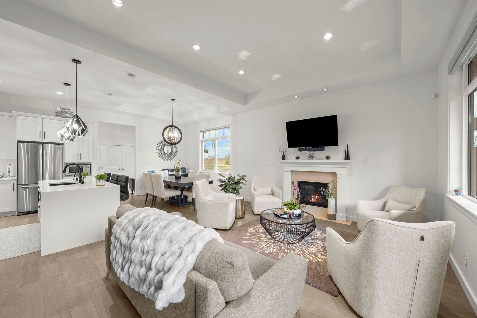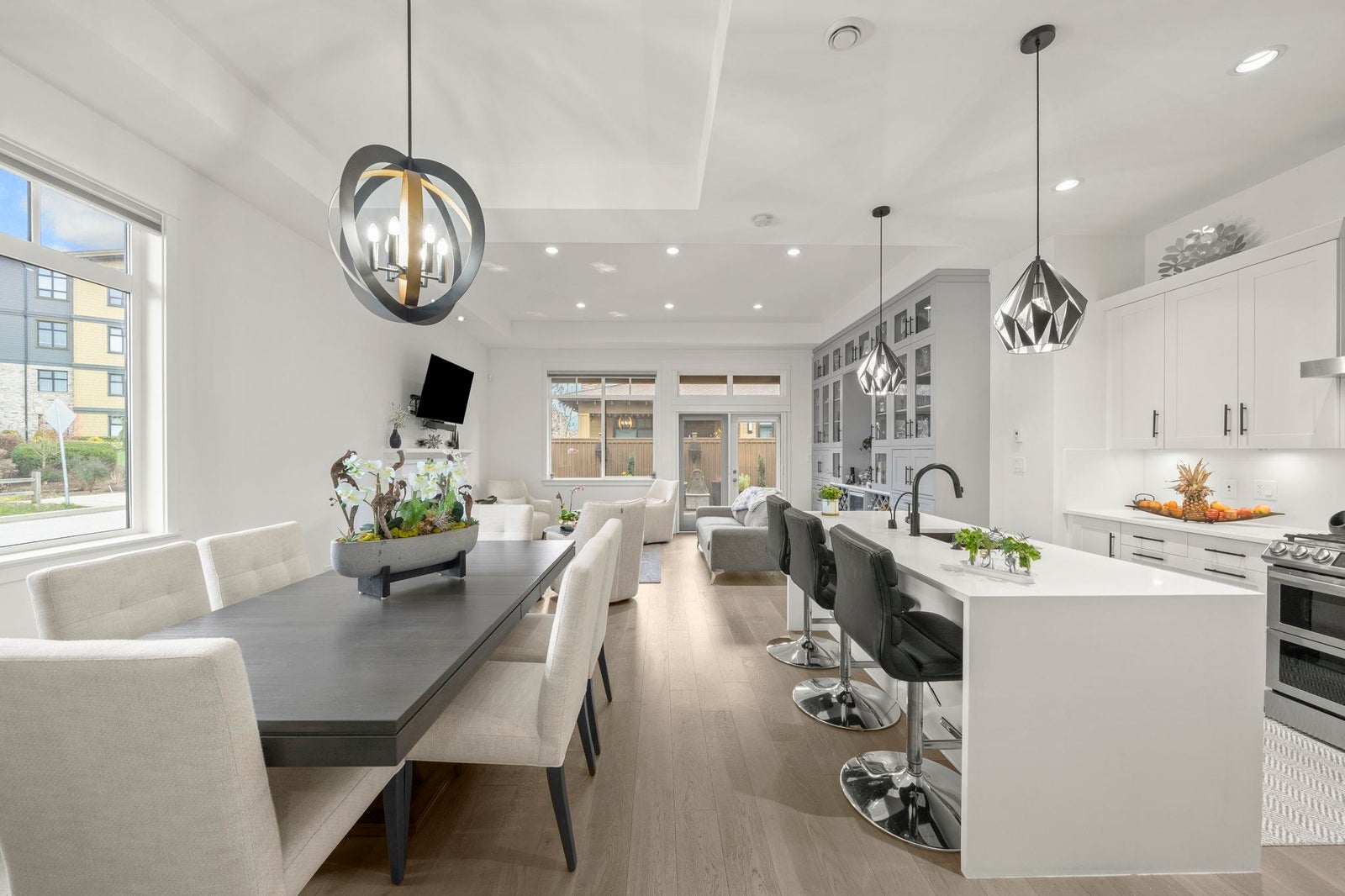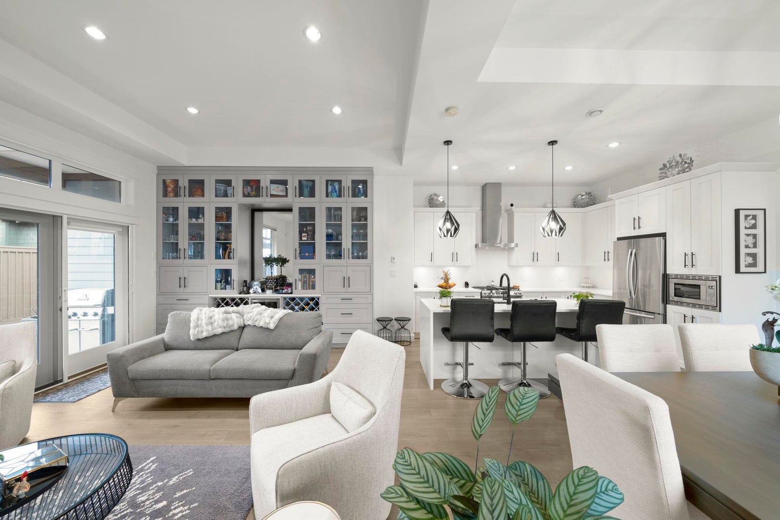 TSAWWASSEN SPRINGS DELIGHT~ rarely available 3 bed and office situated on a QUIET corner lot overlooking the GOLF COURSE. This exceptional bright home boasts an open concept floor plan with soaring 10'9 ceilings, gas fireplace for comfort, and entertainers delight with easy transition to semi covered patio and beautifully landscaped garden. Tons of updates: Gourmet kitchen with updated quartz countertops and backsplash, extra tall custom cabinetry, and wall cabinet with wine fridge, spacious walk-in panty / storage, radiant heating throughout , screen doors, motorized window coverings, engineered hardwood, double spacious garage with EV charger, permanent outdoor lighting, newer stove and concrete on side and driveway and much more. A MUST SEE!