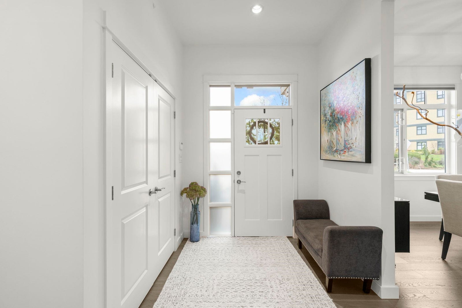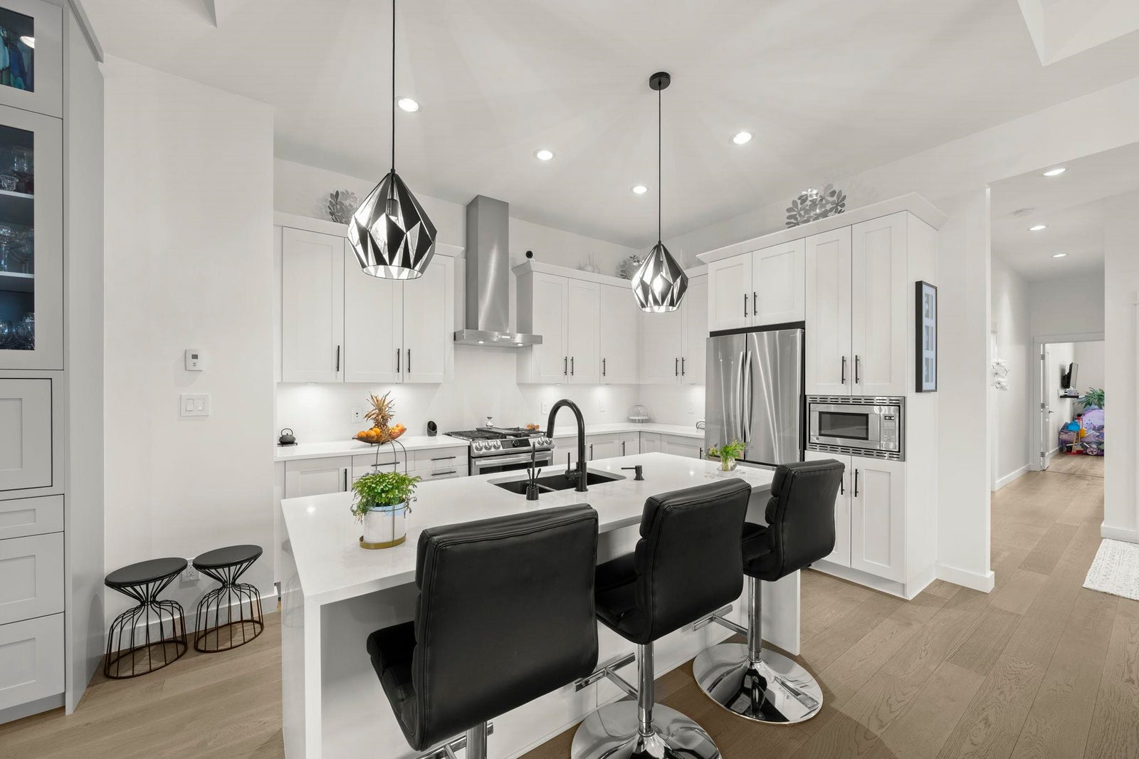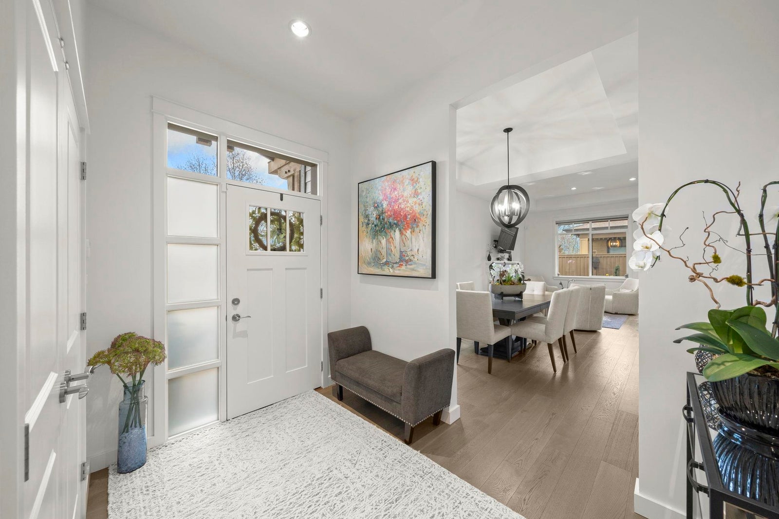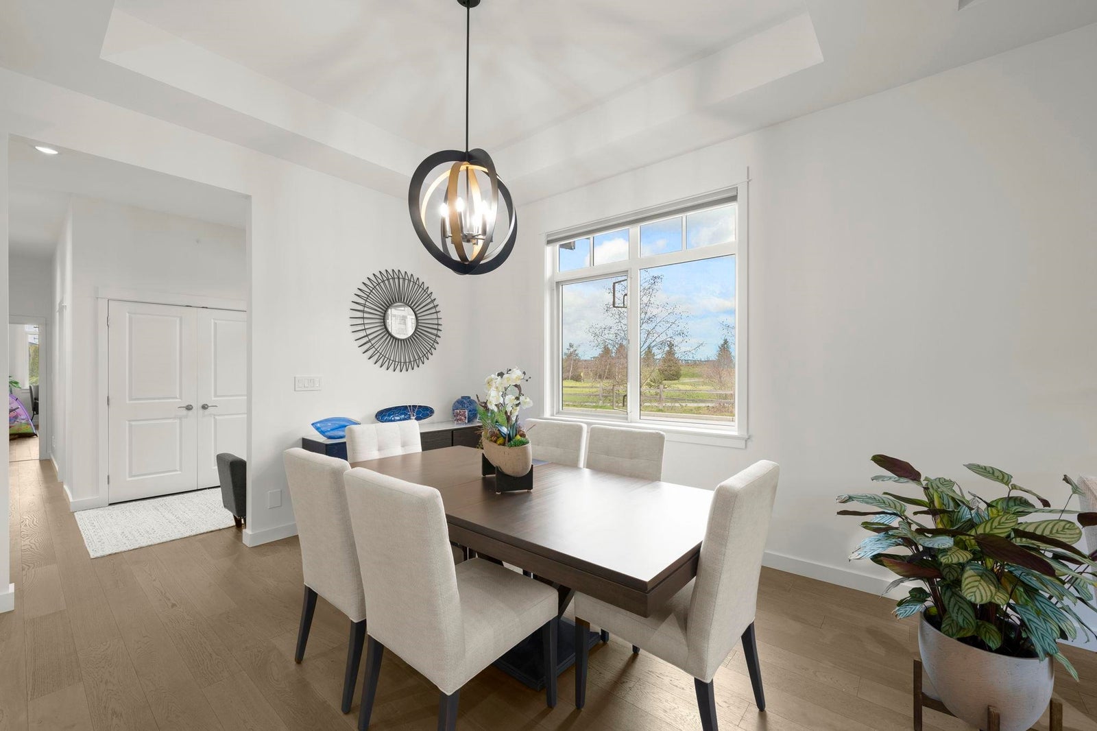 TSAWWASSEN SPRINGS DELIGHT~ rarely available 3 bed and office situated on a QUIET corner lot overlooking the GOLF COURSE. This exceptional bright home boasts an open concept floor plan with soaring 10'9 ceilings, gas fireplace for comfort, and entertainers delight with easy transition to semi covered patio and beautifully landscaped garden. Tons of updates: Gourmet kitchen with updated quartz countertops and backsplash, extra tall custom cabinetry, and wall cabinet with wine fridge, spacious walk-in panty / storage, radiant heating throughout , screen doors, motorized window coverings, engineered hardwood, double spacious garage with EV charger, permanent outdoor lighting, newer stove and concrete on side and driveway and much more. A MUST SEE!